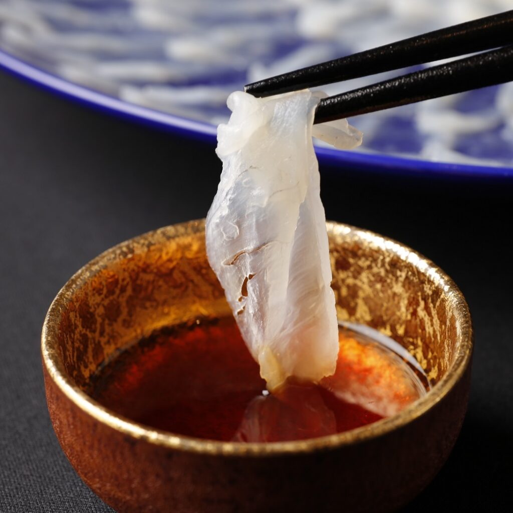 山口県では、昔から刺身を橙(だいだい)果汁で食べることが最高の贅沢とされてきました。春帆楼特製のぽん酢は、だいだいをふんだんに使い、本醸造醤油と昆布、厳選したかつお節を絶妙なバランスで調合しております。